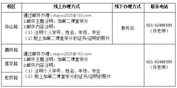 以上纸质版材料提交至华山路校区教务处 佐临楼107。